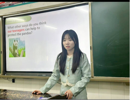 徐丽苹,2022级6班英语专业学生,曾任外国语学院分团委青艺部副部长,获“三好学生”、外研社·国才杯赛事银奖等荣誉。2025年春季,她于绵阳外国语学校担任初二1班实习英语教师及实习班主任。在教学中,她深耕教材挖掘趣味素材,设计情景对话、单词闯关等互动环节,主动旁听资深教师课程,学习板书逻辑与分层教学技巧,课后逐项复盘优化课堂。在班主任工作中,她始终关注学生成长与情绪,课间与内向学生谈心疏导压力,引导学生学会沟通,构建温暖班级氛围。实习期间,她以严谨负责的态度落实各项工作,传递教育温度。未来,也将持续精进技能,争做兼具授业解惑与心灵关怀的教育者。