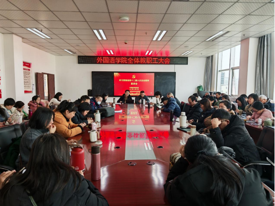 为深入学习宣传贯彻省委十二届八次全会精神,切实把全院教职工思想和行动统一到省委决策部署上来,12 月 25 日,外国语学院党委面向全体教职工召开专题宣讲会,学院党委书记文小兵主讲。