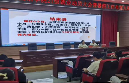 本次动员大会既是对就业工作的高度重视,也是关怀学生的重要体现,让同学们对自己的就业规划有新的认识和思考的同时,也让同学们对未来的职业选择有了更加清晰的方向。接下来,学院将精准把握当前就业形势,持续扎实做好就业宣讲、就业指导、就业帮扶等工作,主动作为,多措并举,努力开创学院就业工作新局面。