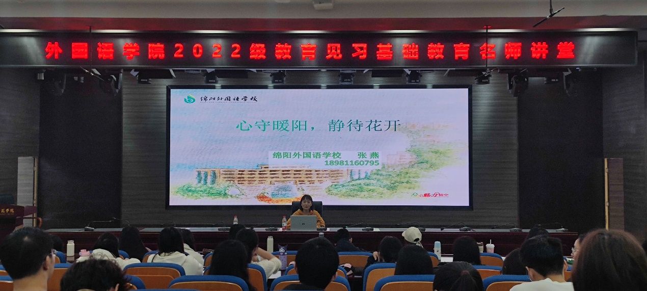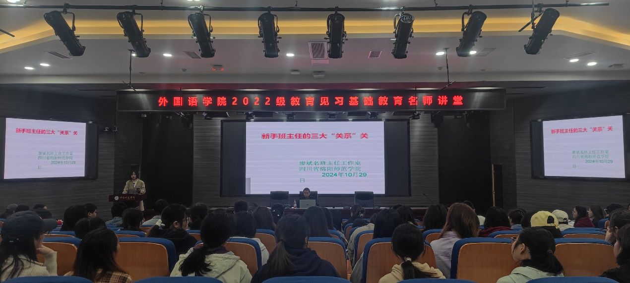 10月29日至31日,来自绵阳基础教育一线的三位教学名师——廖斌、王榕和张燕,围绕中学班主任工作和学生指导分别给2022级英语专业学生作了专题讲座。