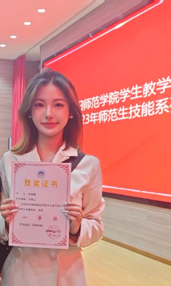 常榆莎,女,中共预备党员,外国语学院2021级5班英语专业学生,现任团支部书记,曾获得“三好学生”、“优秀共青团员”、“优秀社员”、“优秀共青团干部”等荣誉。常榆莎于2024年春季学期在绵阳南山中学担任实习英语教师和实习班主任。她深知,一份精心设计的教案是吸引学生、激发他们学习兴趣的关键。因此,她花费大量时间在备课上,不断研读教材、查找相关资料、设计互动环节活动,确保每一堂课都充满知识与乐趣。同时,她也积极参与听课,从资深教师那里学习他们的教学技巧和课堂管理策略,不断提升自己的教学能力。对于上课,她在课前反复操练,力求将每一个知识点生动地展现给学生。在班主任工作方面,她始终以认真负责的态度落实班级管理工作,包括组织学生开展主题班会、值守自习、查寝以及制作奖状等工作。通过这些工作,她逐步建立起与学生之间的信任和良好的关系。道阻且长,行则将至,行而不辍,未来可期。常榆莎表示,在未来的教育教学工作中,她一定会努力深耕自己,用心对待每一位学生,负责地对待每一堂课,尽心尽力做好每一件事情,不忘初心,脚踏实地,以更认真进取的态度探索教育教学,不断提升专业素养和自身素质,努力成为一名优秀的教育工作者!