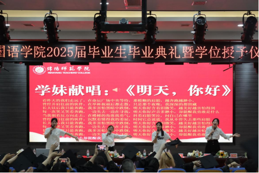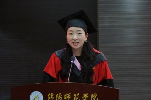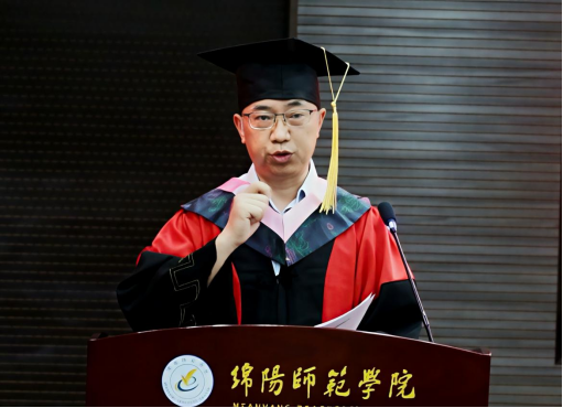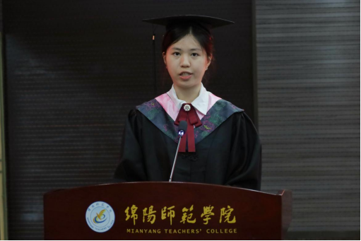 荣耀·正青春。"四川省优秀大学毕业生""校优秀毕业生"的表彰环节,将现场气氛推向第一个高潮。高见、崔芸依次宣读表彰决定,为优秀代表颁发荣誉证书。证书上的烫金字样,是对四年拼搏的最高礼赞;台下如潮的掌声,是同窗间最真挚的喝彩。毕业生代表郭欣悦的发言,以"夏之轮回"为线,串起四年成长的璀璨珍珠:军训时被汗水浸透的衣领、实习教室里反复打磨的教案、竞赛场上与队友击掌的瞬间、论文答辩前彻夜修改的灯光。她眼含热泪承诺:"当帽穗从右拨向左,我们将以'绵师人'的身份,让中国声音传得更远,让青春热血为民族复兴沸腾!"