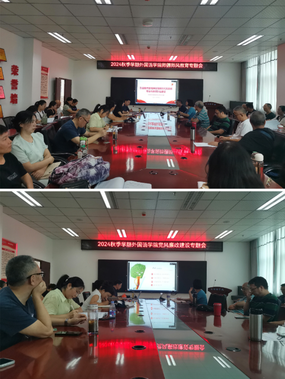 9月12日下午,外国语学院在知行楼532召开2024年秋季学期党风廉政建设暨师德师风建设专题工作会,学院党政领导班子及全体教职工参加会议。会议由学院党委书记文小兵主持。