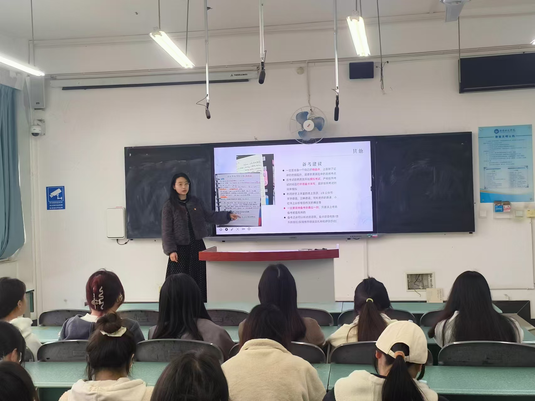 四位学姐的分享内容详实,语言生动,为在场同学提供了许多切实可行的备考建议,赢得了阵阵掌声。分享结束后,同学们积极提问,学姐们耐心解答,现场气氛热烈。
