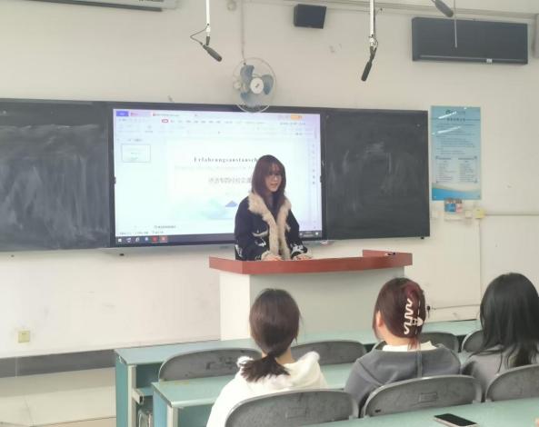 交流会伊始,刘静静老师从历年德语专四考试真题入手,系统梳理了听力、阅读、词汇语法、句型转化和作文五个部分在备考时的注意事项。