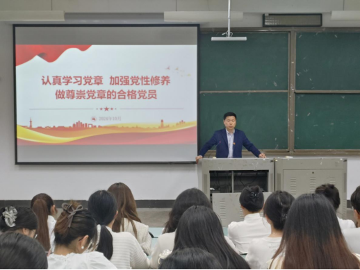 开班仪式结束后,外国语学院党委书记文小兵以“认真学习党章,加强党性修养,做尊崇党章的合格党员”为题,为学员们阐述了党章在不同历史时期的发展与演变,解读党的性质、行动指南、主要成就、历史任务等,强调学习贯彻党章的重要意义,使学员们对党的认识更加全面、更加深刻。他要求全体学员把党章党规党纪学习作为必修课,把坚定理想信念作为终身课题,践行新时代党员的使命担当,为全面建设社会主义现代化国家、全面推进中华民族伟大复兴贡献青春力量。