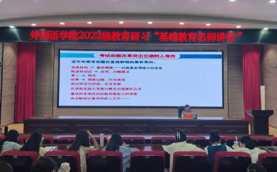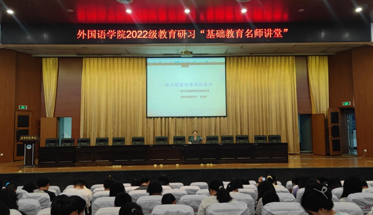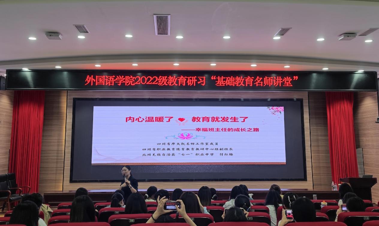 2025年5月27日至6月13日,绵阳师范学院外国语学院在厚德楼247教室开展2022级教育研习“基础教育名师讲堂”活动,学院邀请北川羌族自治县七一职业中学校长付红梅、绵阳外国语学校英语教学名师张燕、张丽娜以及绵阳中学名班主任严小青做系列讲座,外国语学院副院长高见、外国语学院副院长苟萍、教学法团队负责人尹国杰、三习负责人赵梓伊及2022级全体同学参加。