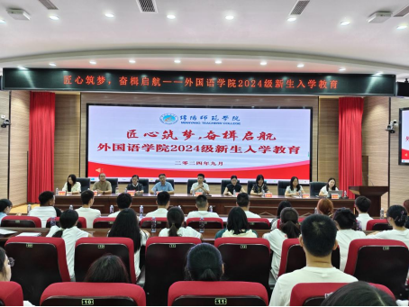 为帮助新生适应大学生活、明确学习目标、树立正确价值观,为大学学习和未来人生奠定良好基础,外国语学院于9月9日在厚德楼247举行“匠心筑梦,奋楫启航”——2024级新生入学教育启动仪式暨开学第一讲。学院党委书记文小兵,党委副书记、纪委书记崔芸,副院长高见、苟萍,党政办主任刘静静,教务办主任李明峻,部分专任教师和团学干部以及2024级全体新生参加本次仪式。会议由分团委书记、学办主任罗春艳主持。