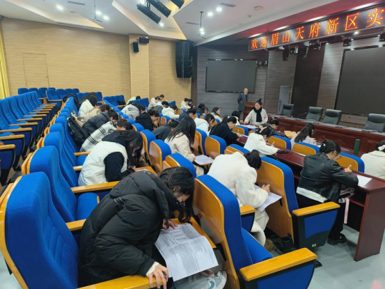 招聘会上,眉山天府新区实验学校小学分管校长吴雪峰进行了专题宣讲,详细介绍了学校的办学特色、教育理念及发展前景,并重点解读了中小学英语教师、双语助教等岗位的任职要求与培养体系。在互动环节,同学们踊跃提问,展现出积极的求职态度和良好的综合素养,获得了招聘单位的高度认可。宣讲结束后,现场有序组织了笔试和面试环节,全面考察毕业生的专业基础、教学能力及从教潜质。经过严格选拔,多名毕业生与用人单位达成初步就业意向。