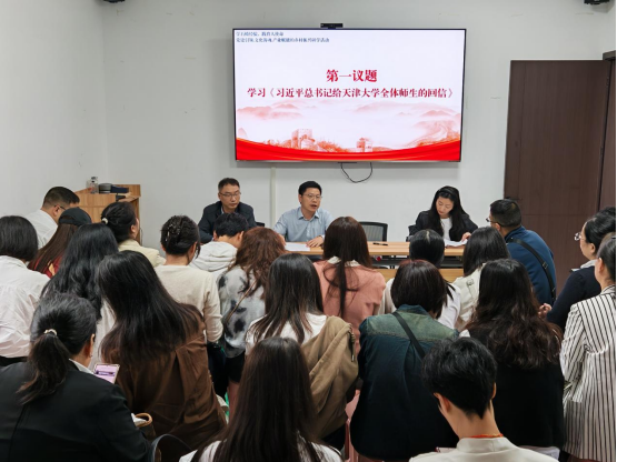 活动严格落实“第一议题”制度,学院党委书记文小兵领学《习近平总书记给天津大学全体师生的回信》。通过学习,全体人员深刻认识到,习近平总书记的回信为高等教育坚守为党育人、为国育才初心提供了根本遵循,也为外语学科服务国家对外开放战略、培养复合型国际化人才指明了方向。