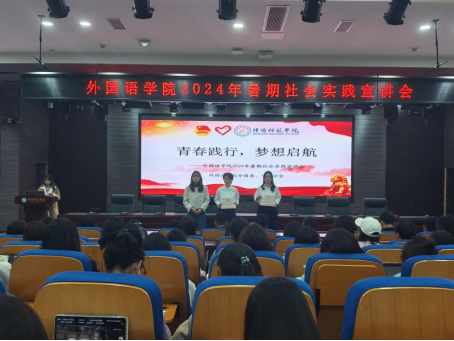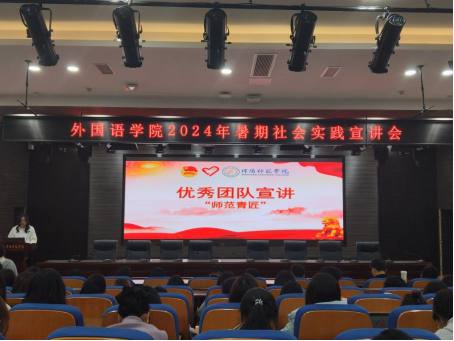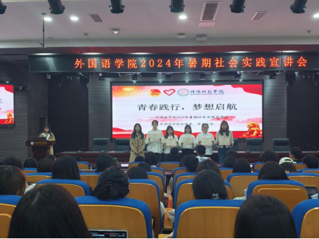 为贯彻落实实践育人目标,宣传展示学院青年学生2024年暑期社会实践风采,进一步巩固扩大社会实践活动成效,鼓励青年学子将课堂理论学习与社会实践相结合,切实提升学生综合素质和社会责任感。11月10日,外国语学院在厚德楼246举办了以“青春践行,梦想启航”为主题的暑期社会实践宣讲会,2024级学生和部分高年级学生参加。