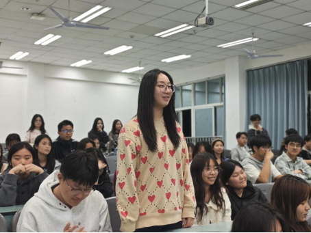 活动期间,外国语学院学生宣讲员蒲家阅通过生动的案例和详实的数据,深入浅出地讲解了垃圾的产生源头及垃圾分类理念的形成过程,使同学们对垃圾分类的历史脉络和发展趋势有了更为全面而深刻的认识。宣讲员邓贻琳则紧扣“校园分类进行时”的主题,通过模拟校园垃圾分类的实际场景,生动形象地阐述了垃圾分类的具体操作步骤,并列举了垃圾分类在资源循环利用、减少环境污染等方面的显著成效,进一步加深了同学们对垃圾分类在促进环境保护和可持续发展方面重要性的认识。在知识问答环节,同学们热情高涨,纷纷举手抢答,现场气氛异常热烈,掌声和欢呼声此起彼伏。