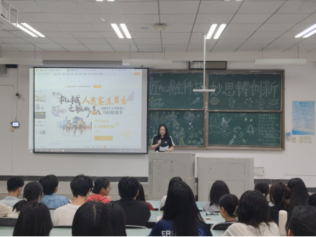 宣讲员龚文倩为大家详细介绍全球首个人形机器人马拉松这一极具创新性的赛事。她分享了人形机器人在核心技术领域取得的重大突破以赛事中的精彩瞬间生动诠释了人工智能与机械工程的深度融合,让在场同学感受到科技创新带来的震撼与魅力。