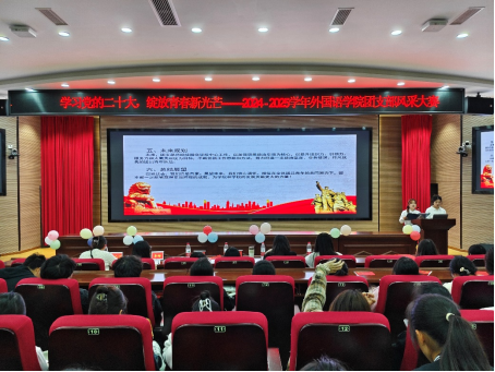 为进一步加强基层团组织建设,展现基层团组织风采,提升基层团组织活力,外国语学院于11月7日晚在厚德楼247开展以“学习党的二十大,绽放青春新光芒”为主题的团支部风采大赛初赛。党委副书记、纪委书记崔芸,分团委书记、学办主任罗春艳、各年级辅导员和学生代表担任本次大赛评委,各团支部学生参与观摩学习。