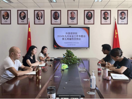 9月25日中午,外国语学院学工口开展九月安全工作专题会暨第五周辅导员例会。会上学办主任罗春艳传达学校学办例会和分团委例会会议精神,安排近期重要事宜并对学生安全管理工作进行重点强调。学院党委副书记、纪委书记崔芸对学生安全管理工作做出安排部署并叮嘱全体辅导员,一是要提高认识和站位,牢固树立“安全第一”的原则,保障学生生命财产安全,谨防各类校园安全问题发生;二是要加强家校联动,主动向家长了解学生身心状况,健全学生心理疏导与危机干预机制;三是要聚焦重点群体、重要时段,强化常态化安全宣传教育和开展常态化隐患排查,完善风险应急机制,全力以赴织密校园“安全网”。