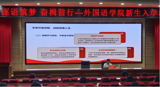 新生入学教育是大学生涯的“第一课”,更是立德树人环节中的重要一环。外国语学院将以此次入学教育为起点,持续关注学生成长需求,不断完善育人机制,助力2025级新生在绵师外院的沃土上砥砺奋进,书写无愧于时代的青春华章。