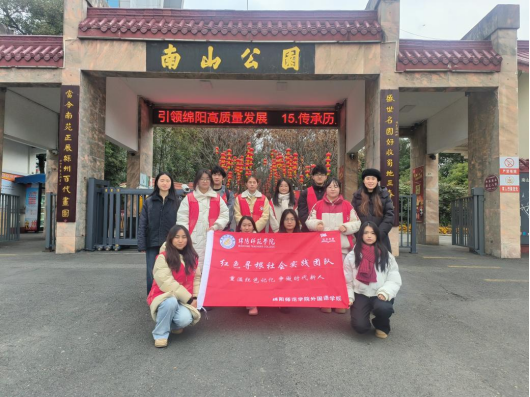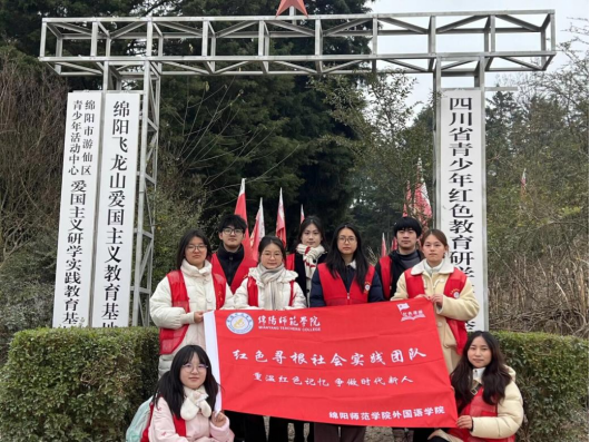 为深化“大思政课”实践教学,推动红色文化教育与外语专业深度融合,引导青年学子在实践中厚植家国情怀、锤炼责任担当,1月 21日,外国语学院红色寻根社会实践团队在辅导员谢鑫燕、学办副主任唐艺带领下,走进绵阳市烈士陵园、飞龙山红色文化教育基地,开展沉浸式大思政实践活动,同步创作中英文双语视频,以专业所长传播绵阳红色文化。