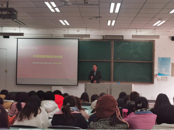 11月25日下午,在厚德楼244教室,我院88级知名校友李现武先生进行主题为“一位英语教师的职业修炼”的报告。外国语学院党总支书记张学良,院长刘捷,党总支副书记童付超,外国语学院19、20、21级部分学生到场聆听报告。